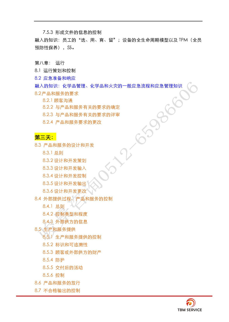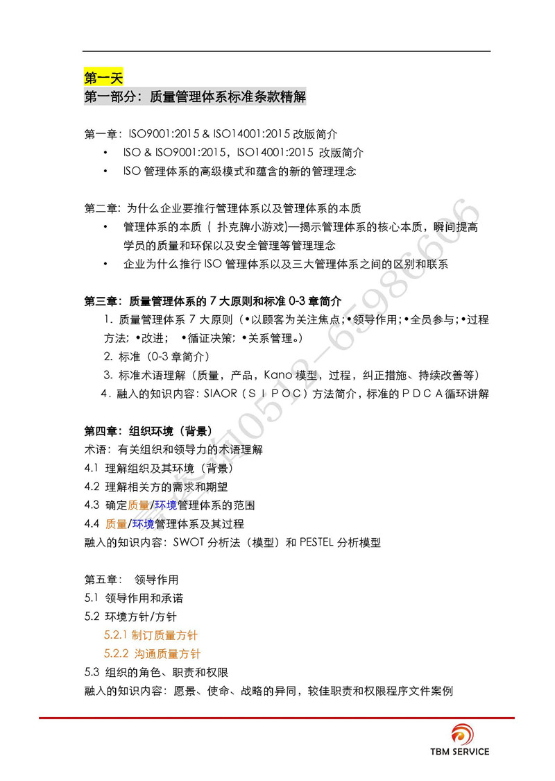 備注:大綱中藍色字為環(huán)境管理體系專有條款,橘色字為質(zhì)量管理體系專有條款。